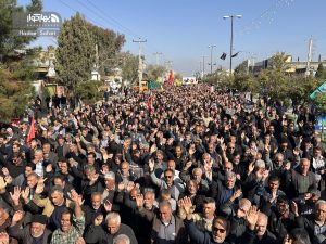 مردم شهر، با اینکه هنوز دلشان از غم شهادت امام امت می سوخت، با گام های استوار به میدان آمده بودند. آمده بودند تا بگویند ما امیرعلی، این دلیرمرد کوچک شهید صفری را تنها نمی گذاریم. نمی گذاریم گرد غربت بر چهره رقیه و مبینا، دختران بصیر شهید فیضیان بنشیند.